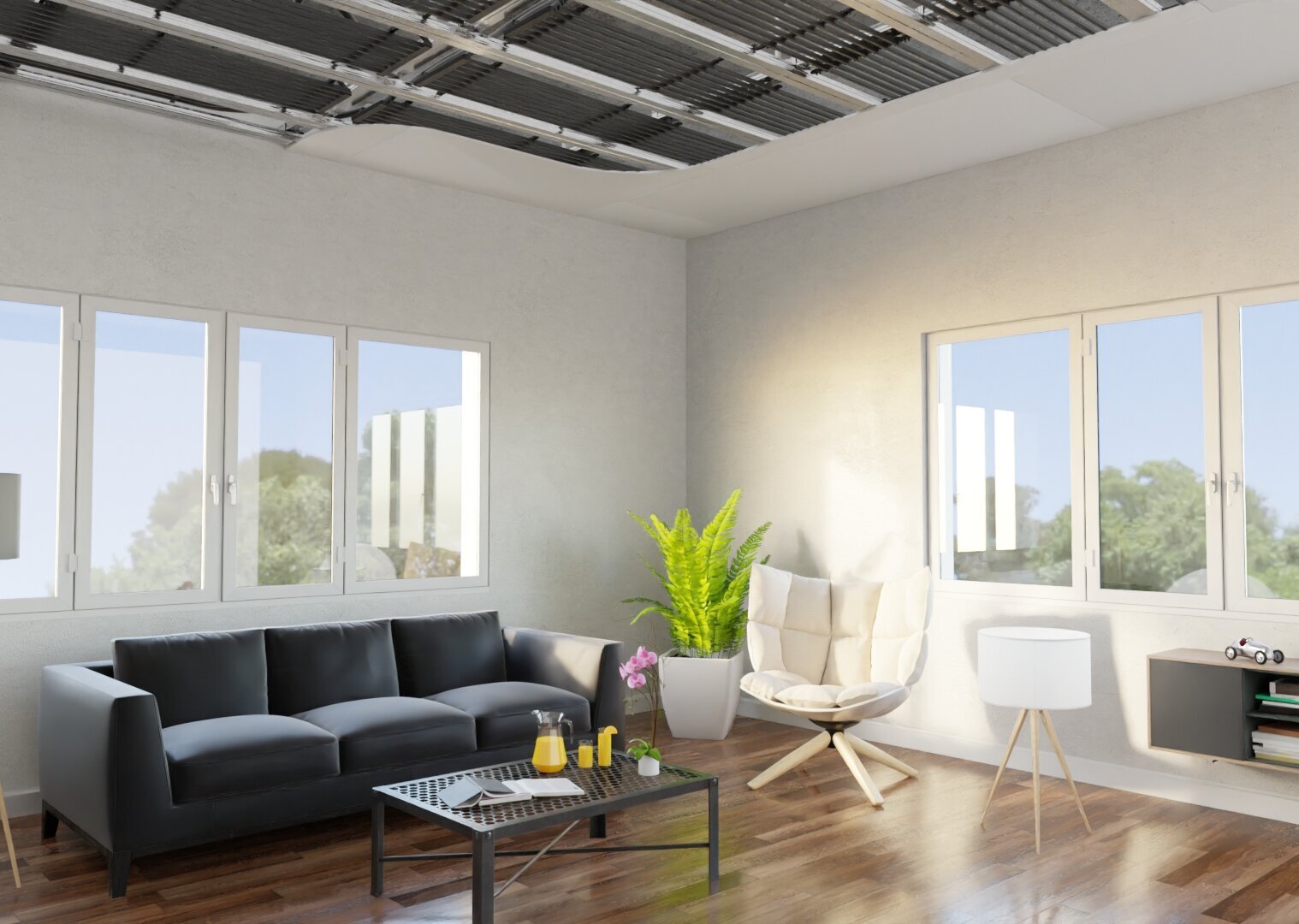 Plug-in connection: aquatherm black is easily and safely connected by means of quick connectors when installed in suspended ceilings. The aquatherm black system register is provided with plug-in connections 16 mm, over which the plug-in connector only has to be plugged up to the stop. The retaining ring has stainless steel teeth and holds the connector in place in the connector. The two integrated O-rings create a completely tight and secure connection. Retaining ring and O-ring are held in position by a brass circlip.