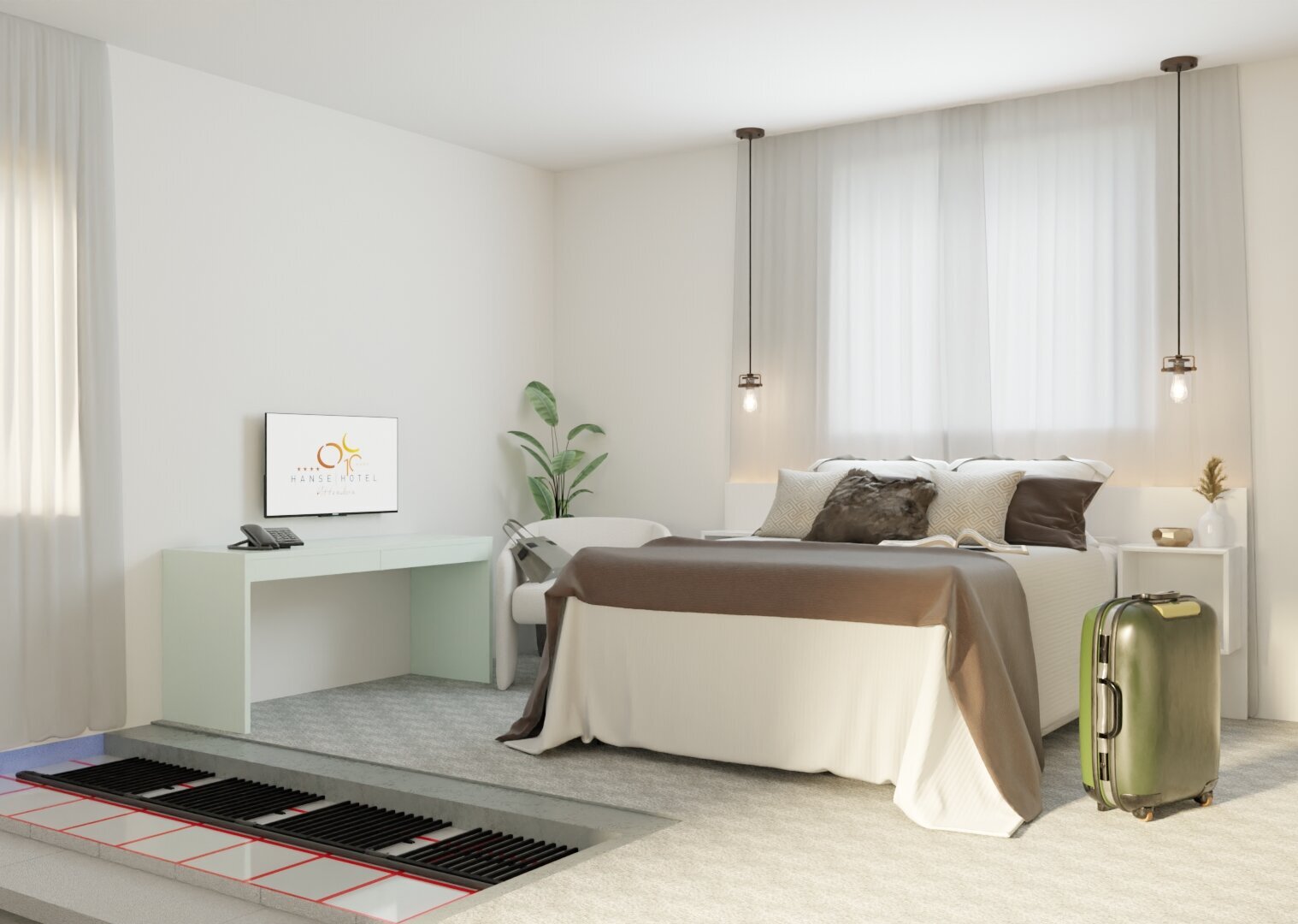 Welding: aquatherm black is connected by means of “heating element socket welding”. By heating the connecting parts, the plastic melts to form a materially bonded and inseparable connection. The individual registers can be connected directly in parallel on one side or alternately on the other. With the extensive aquatherm green pipe moulding range single connections as well as large systems can be completely constructed, including distribution technology.