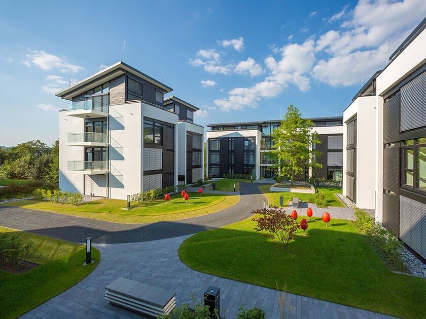 Unusual architecture meets state-of-the-art technology - this is the case with the 44-unit HUF City Living development. The development, which impresses with natural materials, perfect construction and aesthetic transparency, is located in the city centre of Montabaur. Quiet yet centrally located in the middle of the newly developed Aubachviertel, the exclusive residential project with energy standard KfW 55 presents itself.