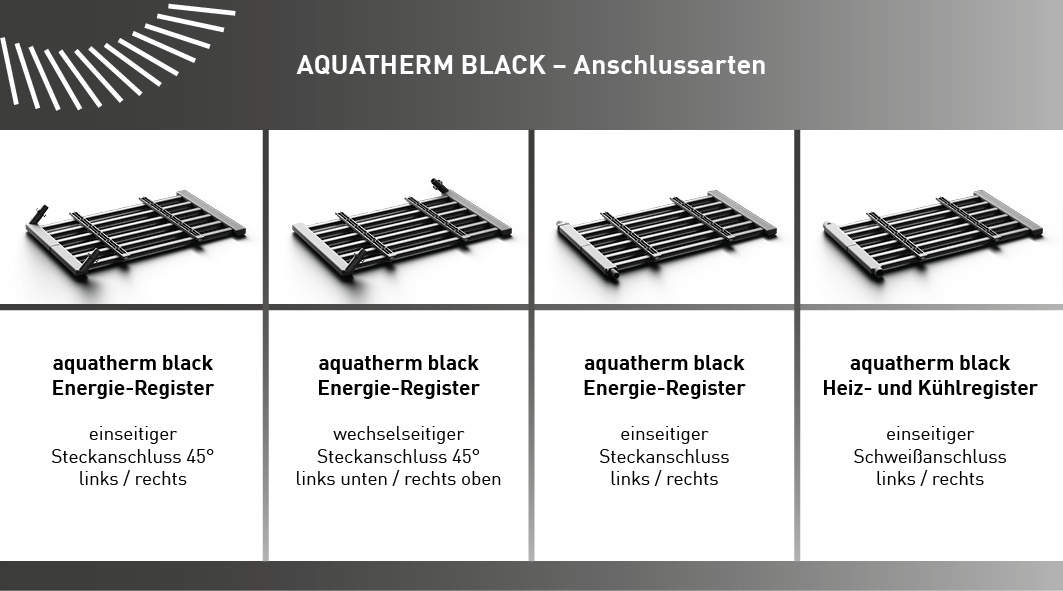 aquatherm black is a multi-award-winning surface heating and cooling system. Versatile in use, manufactured in a compact register design and equipped with future-proof technology - these are some of the key features of aquatherm black. What makes it special: It can be installed in the ceiling as well as in walls and floors. Depending on requirements, the surface temperature of the grids can be set a few degrees above or below the desired room temperature. The radiant energy provides either pleasant warmth or cooling without disturbing draughts or swirling up dust.