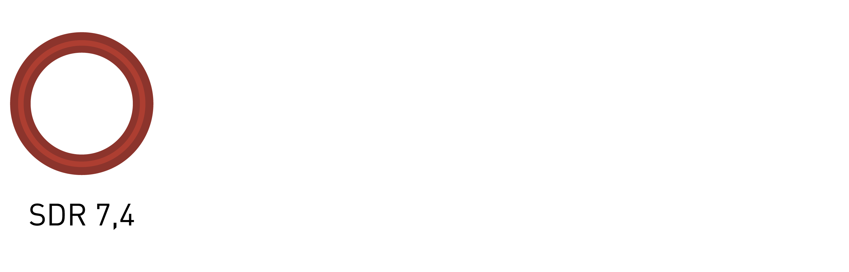 The SDR (Standard Dimension Ratio) is a key figure indicating the pressure resistance. In order to guarantee a certain pressure resistance, a certain maximum SDR number is necessary, depending on the type of material. The following applies: The greater the wall thickness, the smaller the SDR number, the more pressure-resistant the plastic pipe is. The unit indicates the ratio between outer diameter and wall thickness of a pipe.
