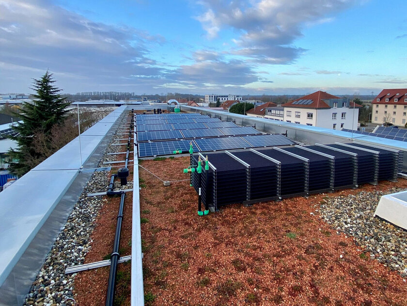 Power roof with aquatherm black system ensures electrical and thermal energy generation – Covering the primary energy demand regeneratively – that was the goal of the TGA planning for the new company headquarters of dekoGraphics, market leader in thermal transfer printing. Together with products from aquatherm GmbH, Metternich Haustechnik GmbH relied on an efficient and sustainable energy concept consisting of various building blocks in the area of energy generation and use.