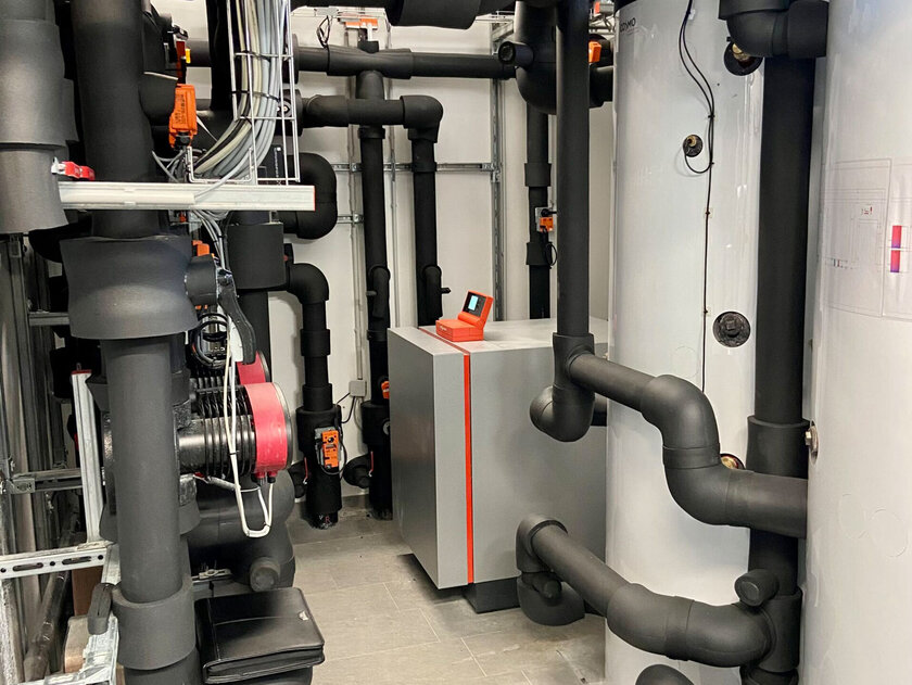 In addition to aquatherm black system, further products from aquatherm were used in the dekoGraphics company headquarters: aquatherm blue was used for the entire heating technology including the connection of the ice energy storage, the heat pump, the charger system, and the power roof. The pipe system is characterised by its high temperature and pressure resistance. Added to this are the exceptionally good welding properties and the fusion into one homogeneous and materially cohesive unit, so a maximum of safety and service life is achieved. In order to guarantee the drinking water distribution in the building, aquatherm green pipe was installed. The hygienically perfect, odorless, and tasteless pipe system guarantees the preservation of the drinking water quality. aquatherm green pipe is not only corrosion resistant, but physiologically and microbiologically harmless and has proven its technical suitability in decades of worldwide application.