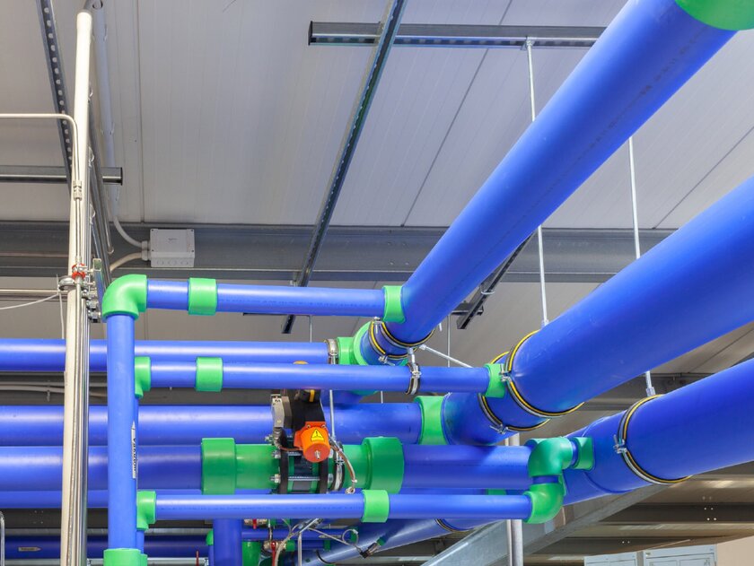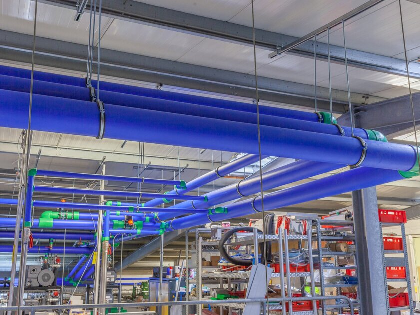 The new vacuum system made a new pipeline system necessary. Instead of using stainless steel as before, Hamper opted for a product made from the plastic polypropylene (PP). Following a recommendation from Busch Vacuum Solutions, aquatherm blue was installed in sizes between 160 and 200 mm.