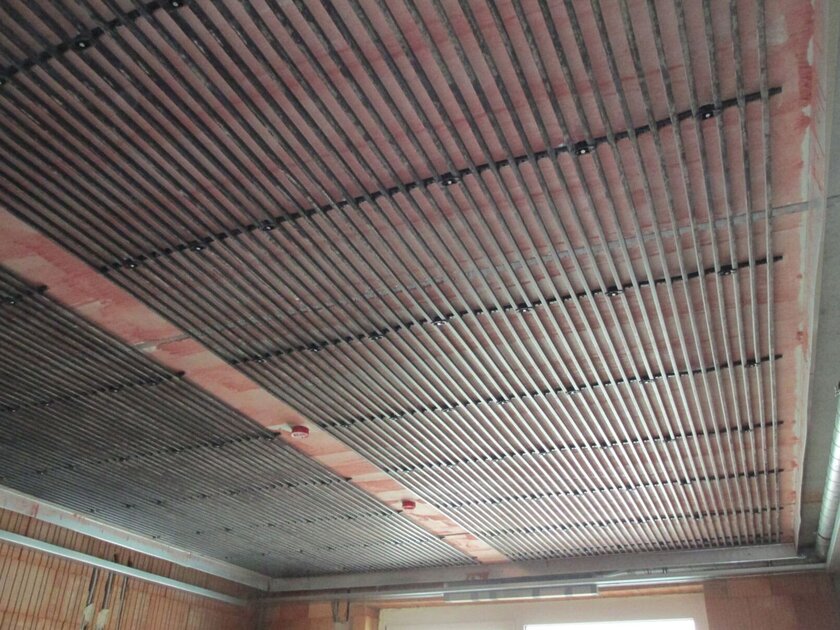 Therefore, extremely heat-insulating building materials were installed, the building was connected to an existing wood chip heating system, and a photovoltaic system for in-house electricity was installed. The climate concept is based on the use of geothermal energy for heating and industrial water and on the enrichment of a central ventilation system with heat recovery. In addition, the ceilings and walls were activated, which means that the ceilings and walls of the individual guest rooms can heat or cool. They ensure maximum comfort at all times of the year and day. This is made possible by the aquatherm black surface heating and cooling system, which was installed in the ceilings and walls of the hotel. The black grids made of corrosion-resistant polypropylene give off the temperature of the water flowing through them by means of radiation. Drafts or swirling dust are eliminated by this process and the feeling of comfort in the room increases. The system also works with lower flow temperatures than conventional heating or higher flow temperatures than other cooling systems, thus enabling particularly efficient and energy-saving operation.
