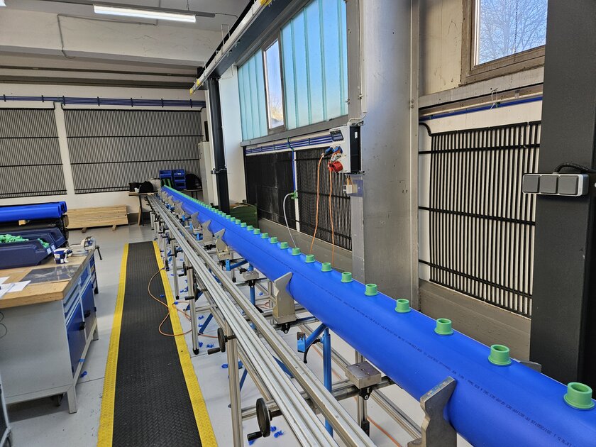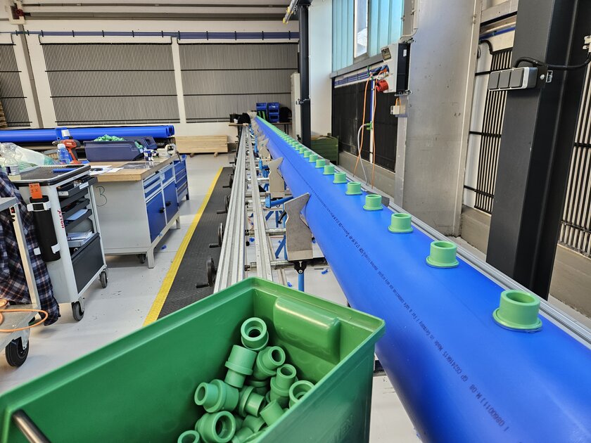 A key feature of the system was the main distributor, delivered prefabricated by aquatherm via its Dutch partner ERIKS. With diameters of up to 200 mm and a total weight of over two tonnes, the manifold was fully pre-assembled at aquatherm’s headquarters in Attendorn, ready for direct installation.
