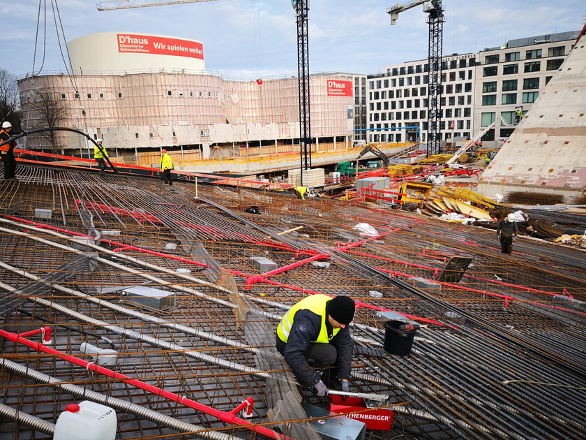 For Kö-Bogen I and the food court of Kö-Bogen II, a sprinkler piping system was sought that was not only safe and made of sustainable material, but that could also be laid directly into the concrete of the floor slabs.
