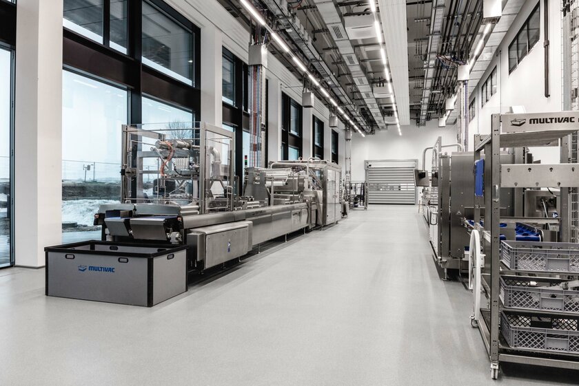 MULTIVAC customers can experience the complete process chain live in the new application center. The spectrum ranges from the demonstration of individual slicers, i.e. the pure slicing of a wide variety of products, through the presentation of different loading solutions after slicing, to the actual packaging process. In addition, 180 office workplaces and flexible conference and event rooms have been created on more than 17,000 square meters of floor space. The investment volume was around 38 million euros. One challenge of this project was in the area of heating and cooling.
