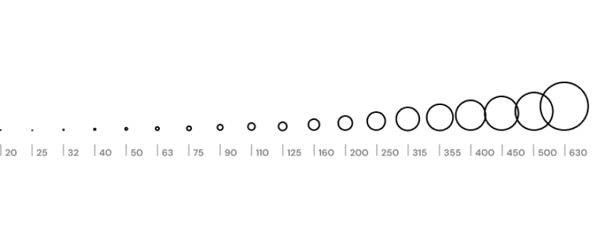 Il sistema di tubazioni aquatherm blue è disponibile nei seguenti diametri: 20, 25, 32, 40, 50, 63, 75, 90, 110, 125, 160, 200, 250, 315, 355, 400, 450, 500 e 630mm suddivisi in diverse serie combinabili tra loro.