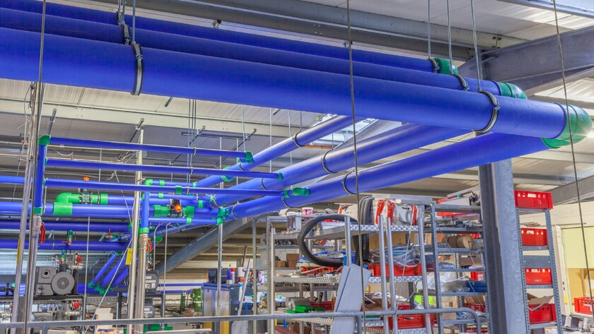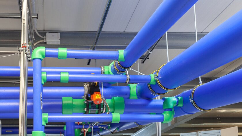 Das neue Vakuumsystem machte ein neues Rohrleitungssystem nötig. Statt wie bisher auf Edelstahl setzte Hamper nach einer Empfehlung von Busch Vacuum Solutions auf ein Produkt aus dem Kunststoff Polypropylen (PP): Installiert wurde aquatherm blue in Größen zwischen 160 und 200 mm.