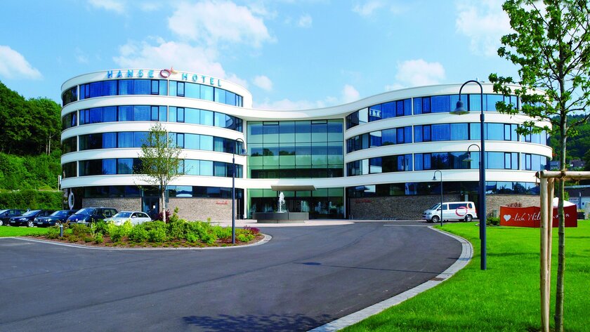 Das Hanse Hotel und aquatherm sind eng verbunden: aquatherm Gründer Gerhard Rosenberg baute das Hotel nach seiner aktiven Zeit im Unternehmen für Rohrleitungssysteme aus Polypropylen und wurde so im Ruhestand zum Hotelbesitzer. Dabei hatte er genaue Vorstellungen von dem Gebäude, das in keinem Fall ein „Schuhkarton“ werden sollte. Die futuristische Gestaltung - zwei runde Baukörper in Form einer Acht - sowie gläserne Kuppeln auf dem Dach und eine Glasfassade sind die prägnantesten äußeren Merkmale des Hotels. Der dreigeschossige Bau enthält 99 Zimmer, ein Front-Cooking-Restaurant, drei Bars sowie mehrere Tagungs- und Veranstaltungsräume.