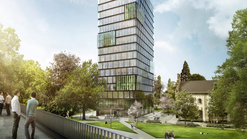 Um Raum für künftiges Wachstum zu schaffen, hatte sich die Bundesanstalt für Immobilienaufgaben als Eigentümerin des Campus, der das Zentrum der Organisationen der Vereinten Nationen in Bonn bildet, zu dem Neubau entschlossen. Unter der Leitung des Bundesamtes für Bauwesen und Raumordnung (BBR) entstand auf einer Grundfläche von zirka 20 x 30 Metern ein schlankes Hochhaus mit 17 Ober- und 3 Untergeschossen; das 18. Stockwerk ist ein Staffelgeschoss, das der Haustechnik dient. Die Gesamtkosten belaufen sich auf rund 75 Millionen Euro. Durch die relativ kleine Grundfläche fügt sich das Gebäude, das von dem Berliner Architekten Stefan Lippert entworfen wurde, in die bestehende Bebauung ein und greift so wenig wie möglich in den umliegenden Grünbereich des Campus ein. Ein Highlight ist die gläserne Außenhaut des Büroturms, die von zweigeschossigen Wintergärten unterbrochen wird. Diese stellen eine Verbindung zur umliegenden Grünfläche dar und werden von den rund 330 Mitarbeitern als Ort der Begegnung und Erholung in den Pausen genutzt.